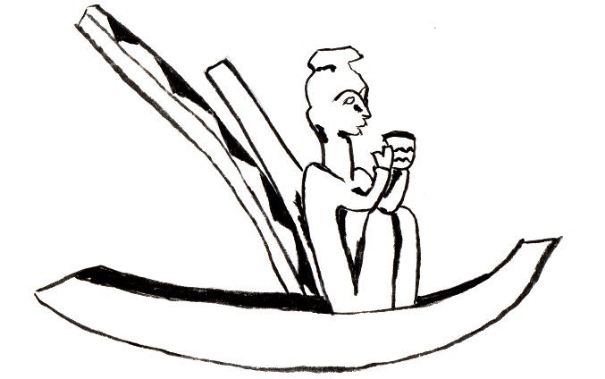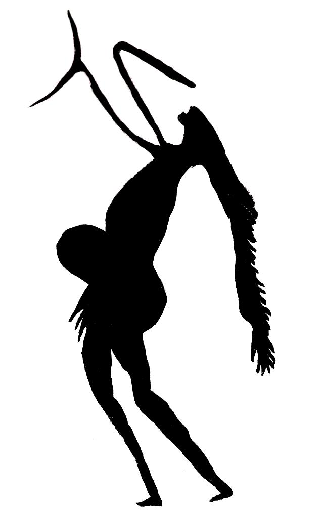 Ilustración basada en un amuleto Haida (gran garza azul y humano), conservado en el Royal British Museum